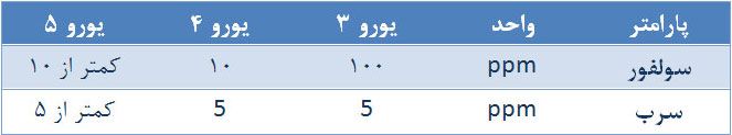 با توجه به استانداردهای اروپا (98/69/EC و 8/2002/EC) غلظت گوگرد و سرب برای سوخت بنزین مطابق جدول زیر می باشد: