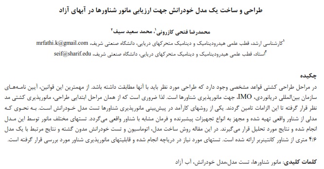 مقاله طراحی و ساخت یک مدل خودرانش جهت ارزیابی مانور شناورها در آبهای آزاد