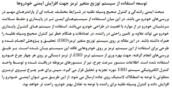 توسعه استفاده از سیستم متغییر ترمز (EBD) جهت افزایش ایمنی خودروها